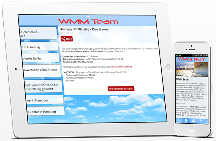 Mit 19 Jahren Erfahrung gehört WMM mit zu den etabliertesten inhabergeführten Marktforschungsagenturen Deutschlands. In all diesen Jahren haben wir unsere Expertise in den unterschiedlichsten Marktsegmenten immer wieder unter Beweis gestellt. Wir entwickeln uns ständig weiter, um den Anforderungen unserer Kunden und Probanden dauerhaft gerecht zu werden. In puncto Forschungsmethodik und Technologie sind wir so immer auf dem neuesten Stand und können bestmögliche Marktforschung bieten.